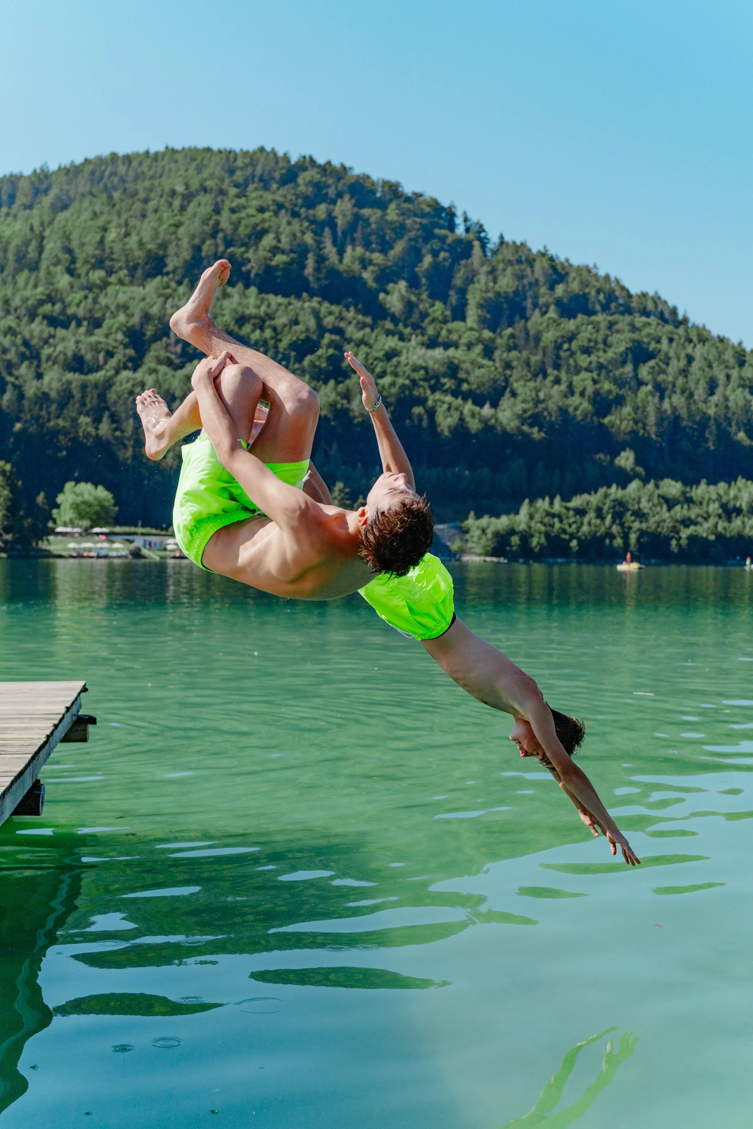 Mit einer Wassertemperatur von bis zu 29 Grad zählt der Klopeiner See zu den wärmsten Seen im gesamten Alpenraum. Dass es sich darin vortrefflich schwimmen bzw. planschen lässt, ist daher keine große Überraschung. Dank seines klaren Wassers ist der See aber auch ein echtes Eldorado für Taucherinnen und Taucher. Stand-Up-Paddling erfreut sich hier ebenfalls großer Beliebtheit – genau wie das Windsurfen. Wer es etwas weniger sportlich, aber dafür umso gemütlicher mag, dem empfehlen wir eine Seerundfahrt mit dem Tretboot.